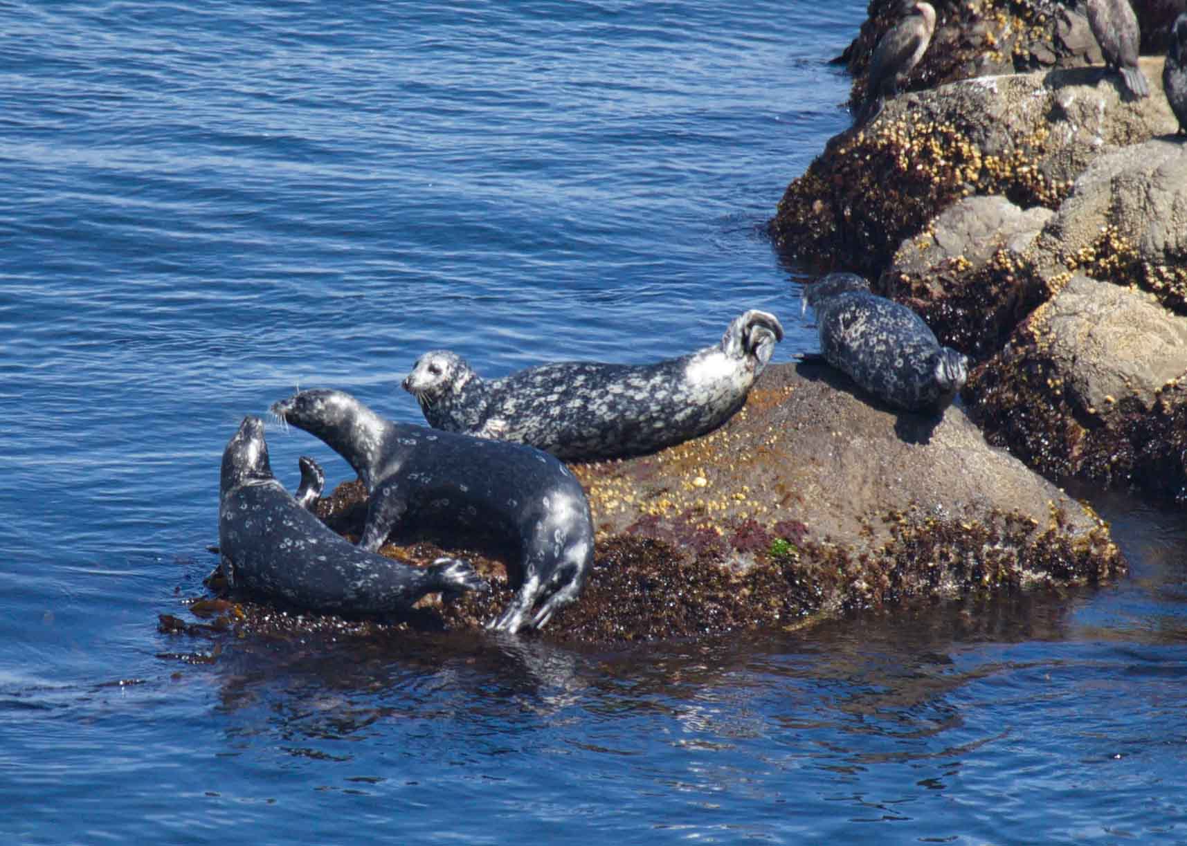 Исследователи насчитали двенадцать особей, шесть из которых лежали на камнях, активно социально взаимодействуя друг с другом, в основном конкурируя между собой за «лежаки» и недовольно рыча.