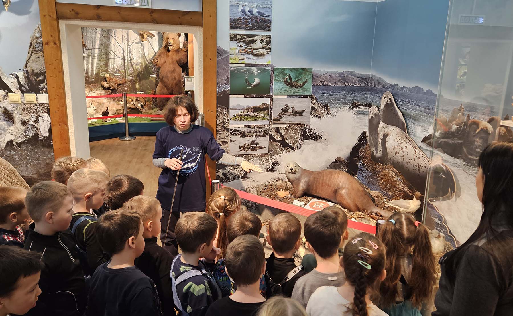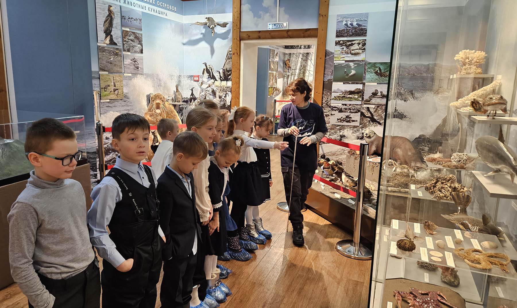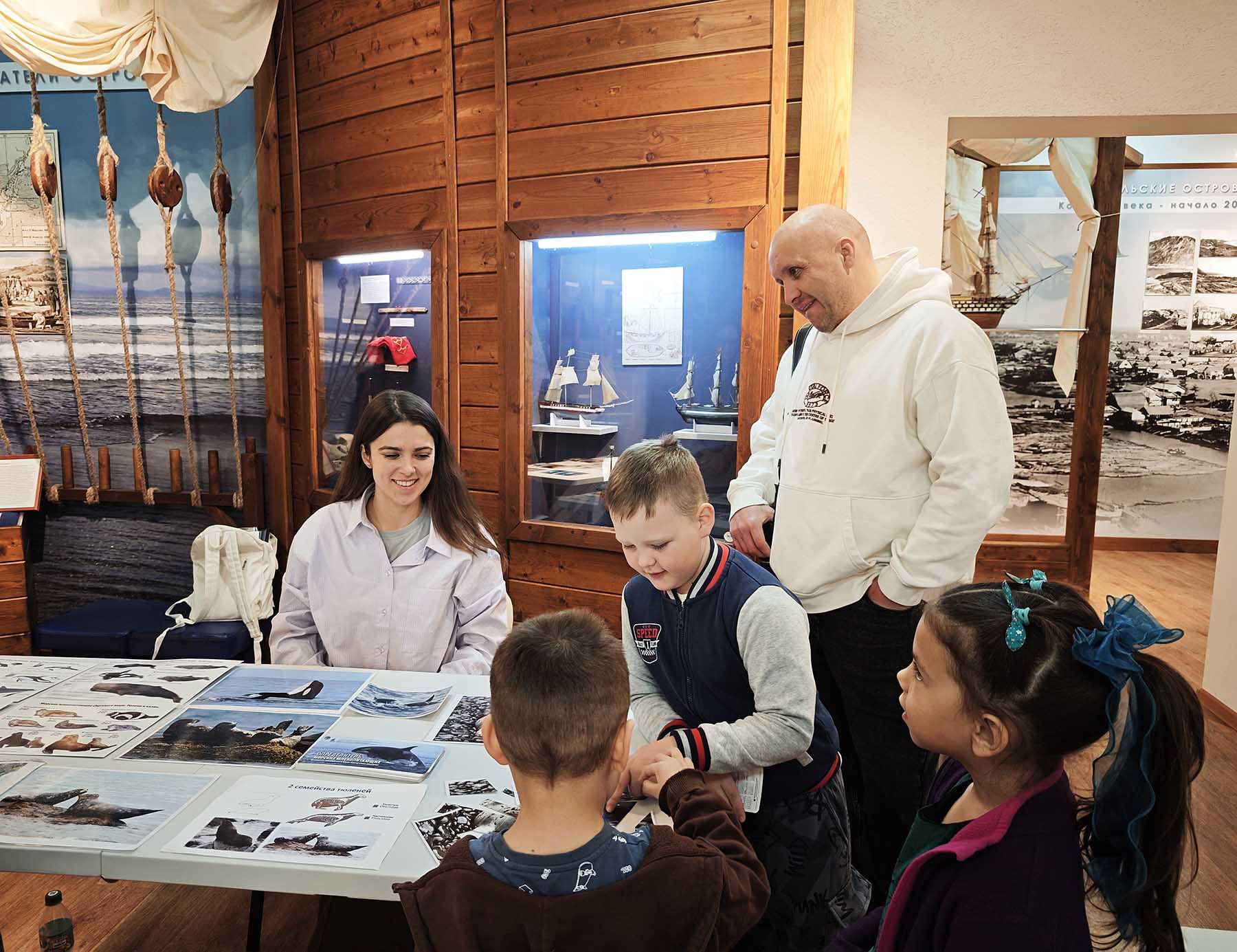 Программа была насыщенной: дети совершали экскурсию по Морскому залу Южно-Курильского краеведческого музея, где их знакомили с заповедником «Курильский» и заказником «Малые Курилы», их морскими обитателями. Они смотрели захватывающий видеоролик «Что скрывает Тихий океан?» и учились распознавать обитателей глубин в игре-презентации «Звуки моря».