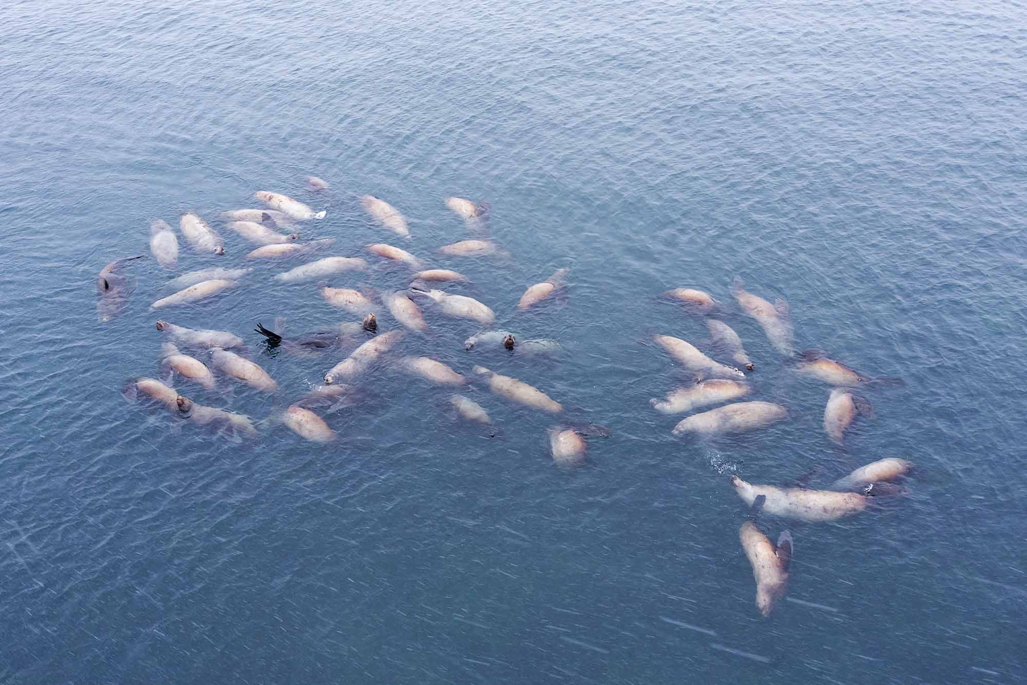 Близко приблизившийся коптер способен спугнуть мирно отдыхающих зверей в воду.