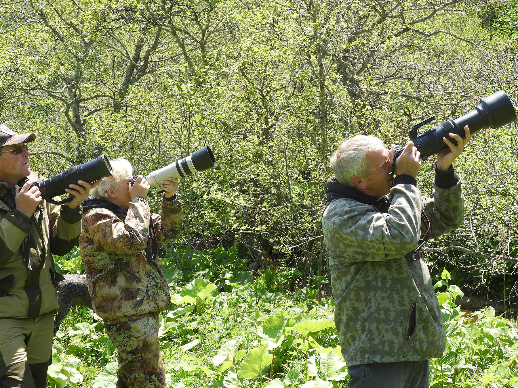 Уже в третий раз нас посетила семейная пара фотографов – Елена Щипкова и Игорь Дмитриев (ПроЗаповедник), которые также помогали сотрудникам научного отдела заповедника в кольцевании рыбного филина. Их желание возвращаться вполне объяснимо – их захватило магнетические притяжение Южных Курил и большое желание всех фотографов-анималистов «поймать тот самый кадр».