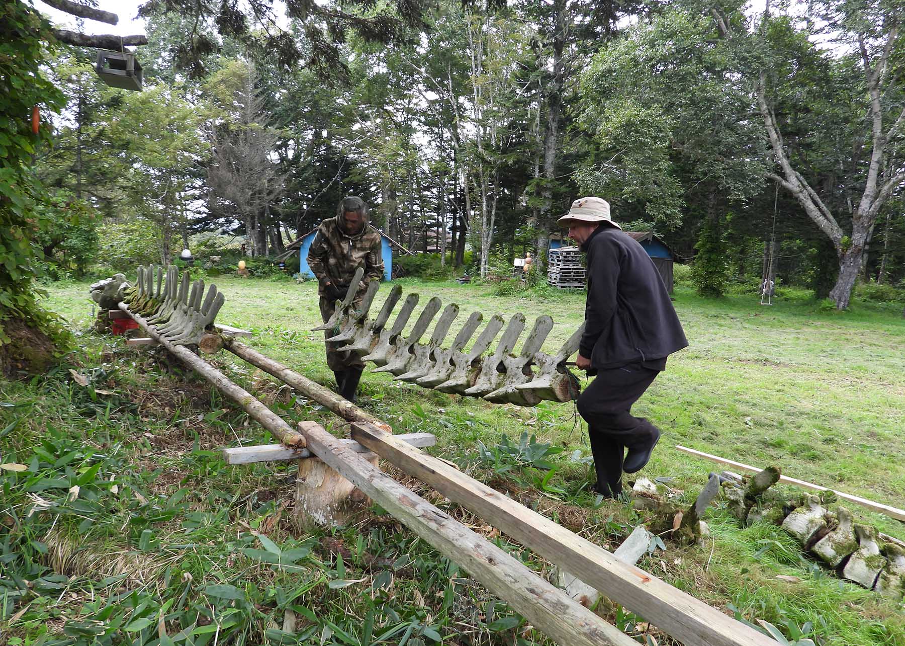 Семейная пара Елена и Борис Баркановы приехали к нам с соседнего острова Итуруп. Работали на Северном участке заповедника «Курильский». Они участвовали в рейде на нерестовых реках, занимались орнитологическими учётами, провели реконструкцию арт-объекта из позвонков китов на территории кордона «Саратовский».