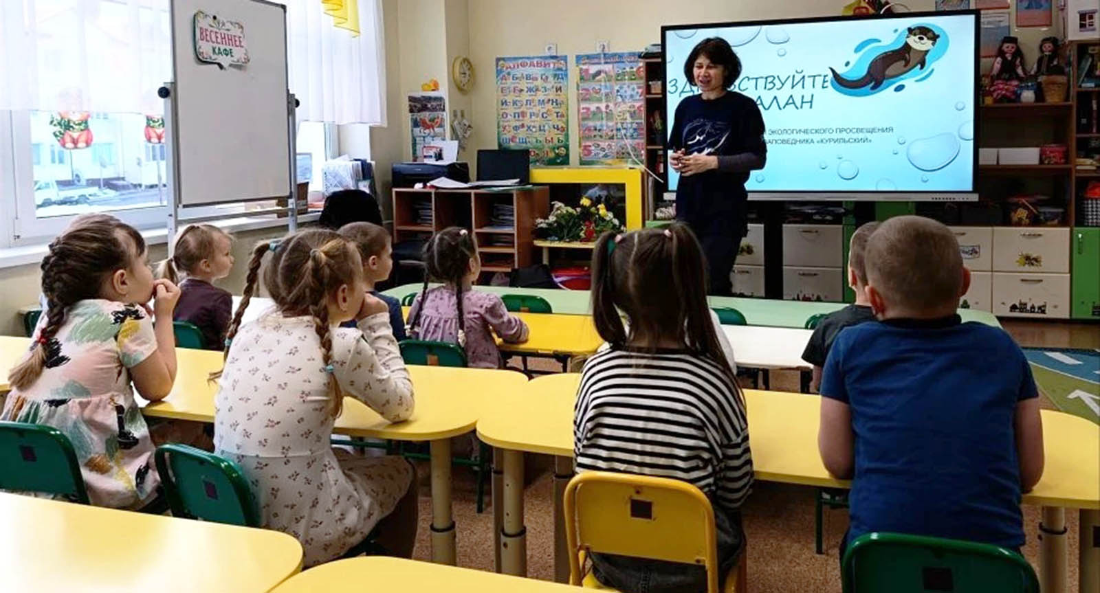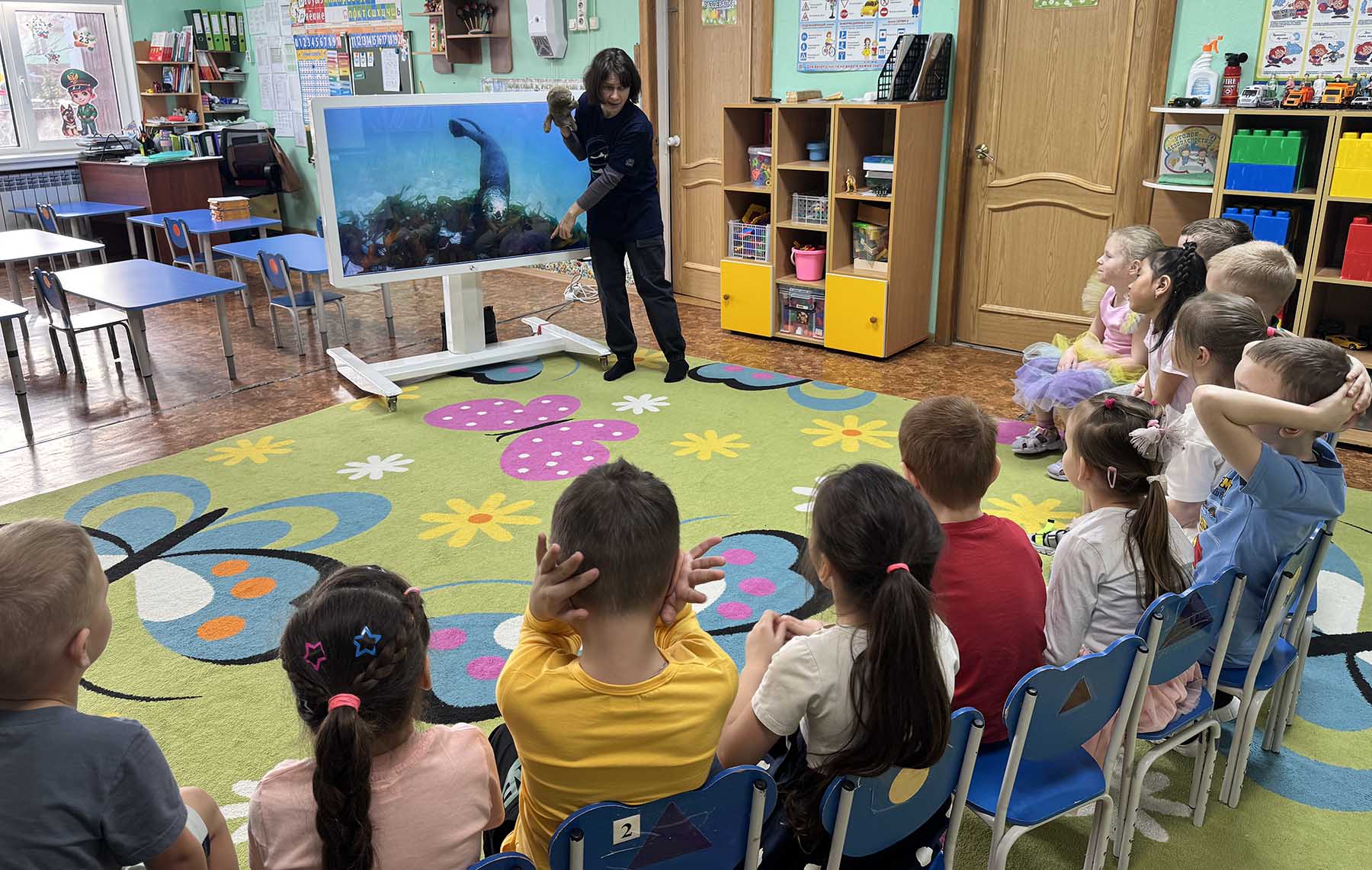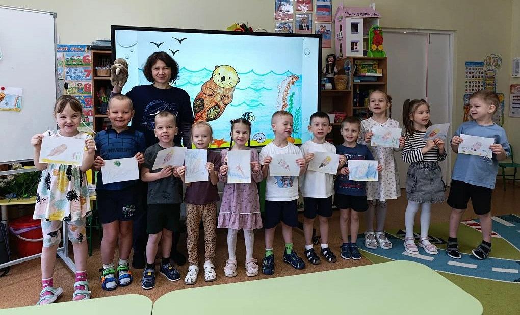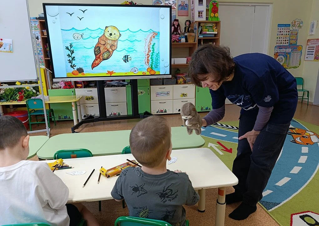 И вот, в рамках проекта, отделом экологического просвещения заповедника разработана эколого-просветительская программа «Калан и море» для самых маленьких участников. Цель программы – познакомить дошкольников и младших школьников (прежде всего в регионах, где обитает калан) с этим животным и показать, насколько интересен и в то же время уязвим морской мир Тихого океана. С 24 февраля 2026 г. в детских садах Южно-Курильска на острове Кунашир сотрудники заповедника «Курильский» начали проводить мероприятия по этой программе. Всего в данной интерактивной программе – 10 занятий, каждое из которых освещает определенную сторону или проблему из жизни калана.