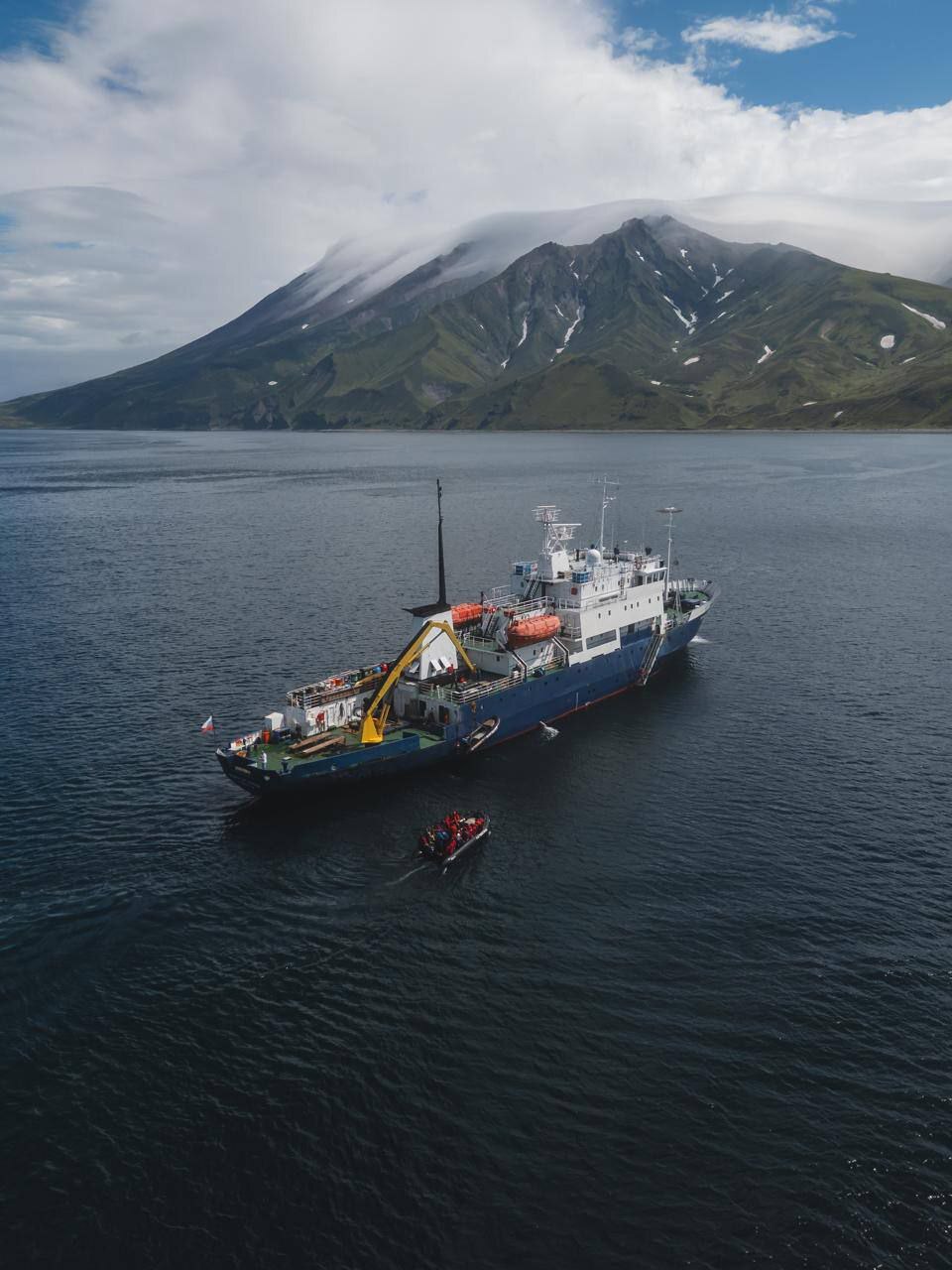 29.08.25 и 30.08.25 съемочная группа вместе с сотрудником заповедника «Курильский» посетила региональный памятник природы «Вулкан Менделеева», а также места стоянок древних людей в районе озера Лагунное.
