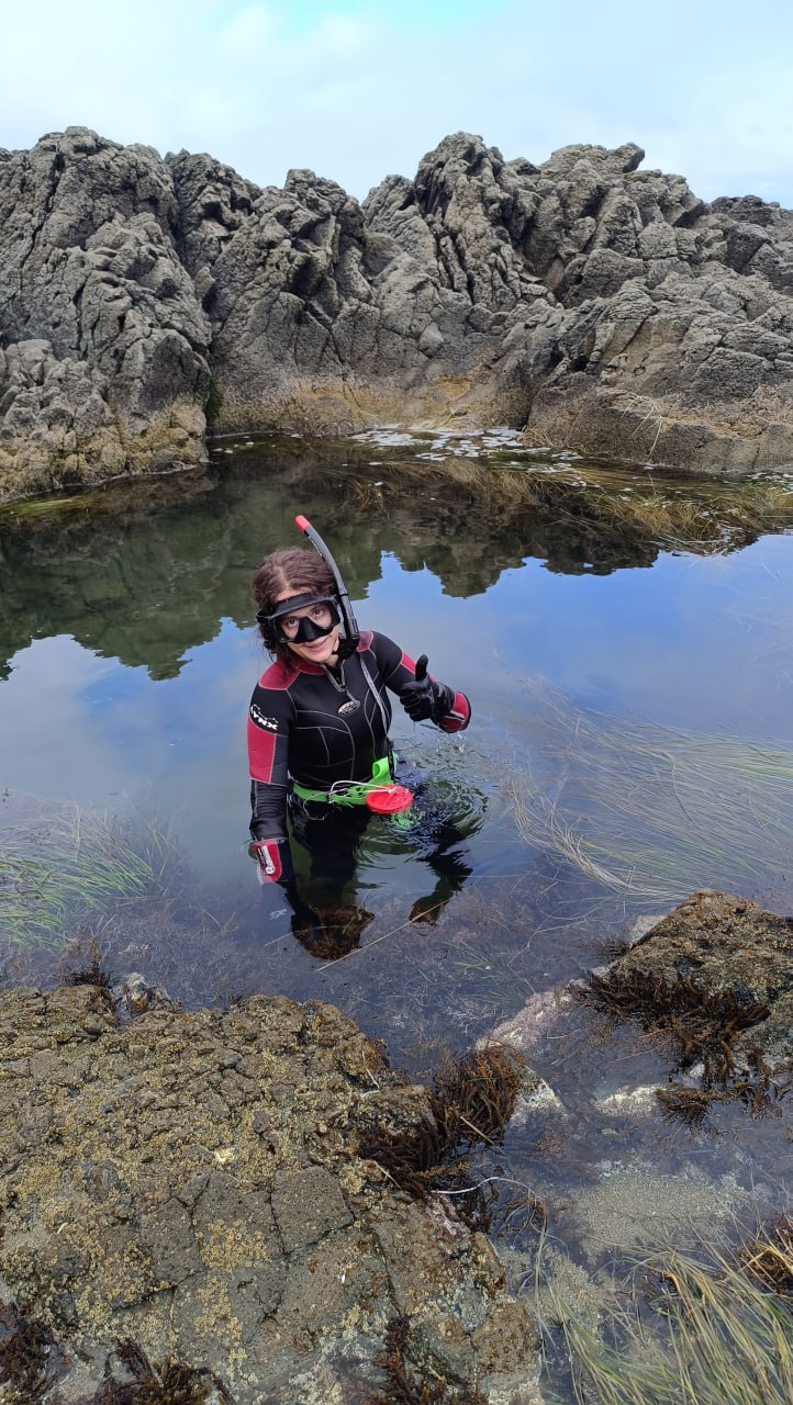 Александра Чава во время обследования зоны литорали, о. Кунашир.