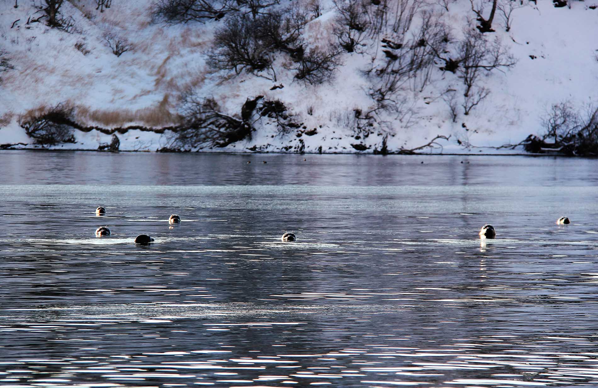 Обычно, когда речь заходит о продухах (дыхательных отверстиях во льду), мы вспоминаем байкальскую нерпу или гренландского тюленя в Арктике. Информации о том, как обустраивают свой зимний быт тюлени Южных Курил — антур (курильский подвид обыкновенного тюленя, Phoca vitulina stejnegeri) и ларга (пятнистая нерпа, Phoca largha), крайне мало. Новые данные, полученные на полуострове Весловский, позволяют заглянуть в скрытую жизнь этих осмотрительных животных.