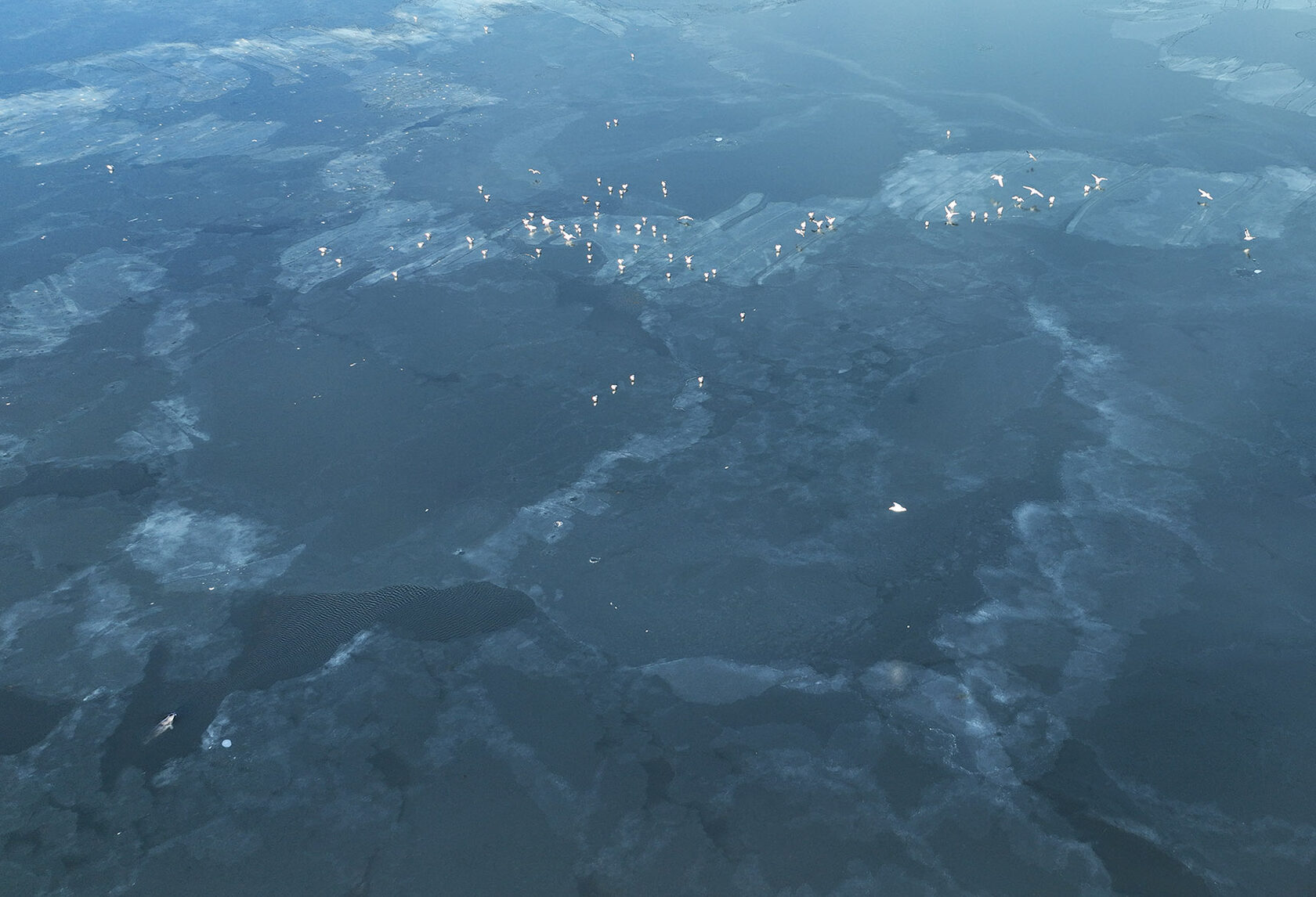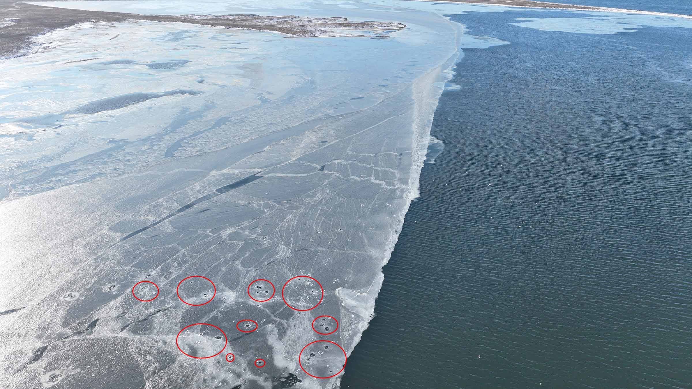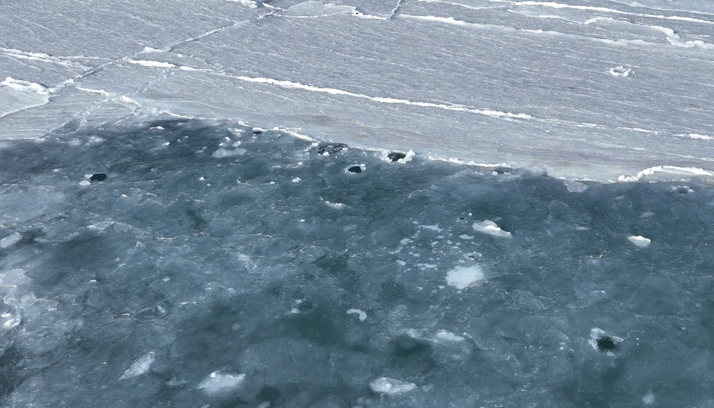 Продухи тюленей во льду, акватория о. Кунашир. 16.01.2026.