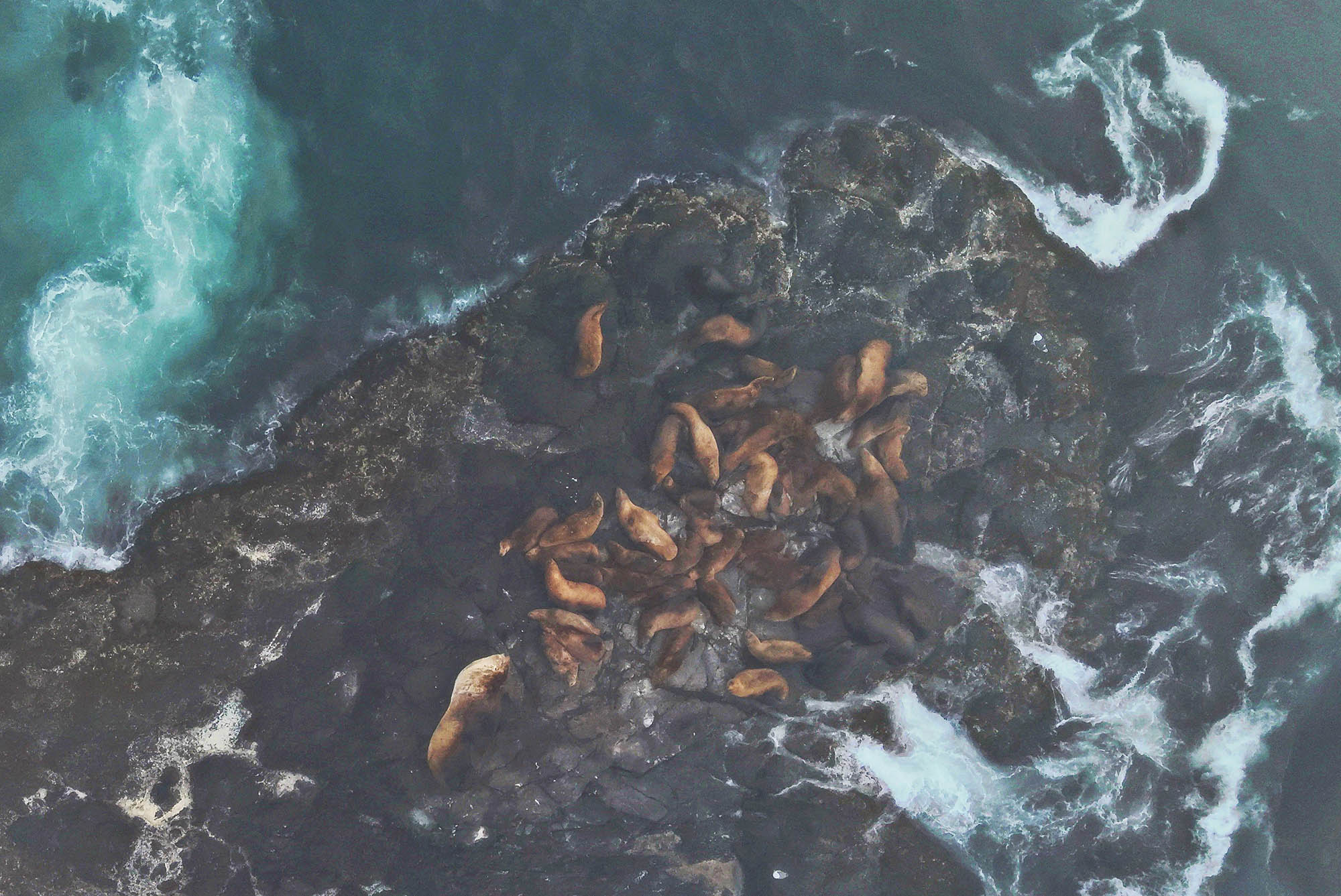 В районе островов Осколки почти всегда туман, повышенная облачность и довольно сильное волнение моря. Так было и в этот раз. Туман был очень сильный, самих островов – и Шишки, и Лисьи (находятся на расстоянии 1-2 км друг от друга) даже не было видно. Солнце еле проглядывало, видимость не более 100 м. Однако современные методы исследований позволяют провести наблюдения, держась на безопасной дистанции от скал, практически исключив беспокойство для животных. С помощью коптера, который в программируемом автоматическом режиме может детально исследовать участки с расстояния 500 м, был произведён осмотр скал Пещерная и Шишки Восточные.
